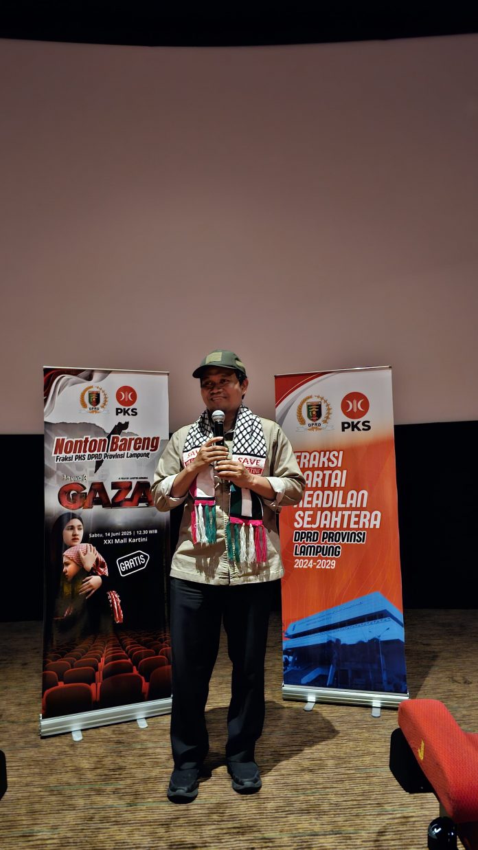 Fraksi Partai Keadilan Sejahtera (PKS) DPRD Provinsi Lampung menggelar Nonton Bareng (Nobar) Film “Hayya 3: Gaza” sebagai bentuk kepedulian dan dukungan terhadap perjuangan rakyat Palestina. Acara berlangsung di Theater 5 XXI Mall Kartini, Bandar Lampung, Sabtu siang (14/6), dengan jumlah kursi sebanyak 119 tempat duduk yang nyaris seluruhnya terisi oleh peserta dari berbagai kalangan masyarakat.