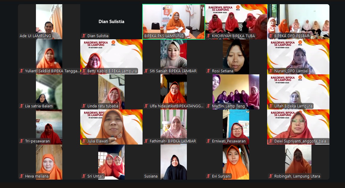 Bandar Lampung, 19 Oktober 2025 — Bidang Perempuan dan Keluarga (BIPEKA) Partai Keadilan Sejahtera (PKS) Provinsi Lampung meneguhkan komitmennya untuk memperkuat ketahanan keluarga sebagai fondasi utama bangsa. Melalui Rapat Koordinasi Wilayah (Rakorwil) BIPEKA PKS Se-Lampung yang digelar secara daring pada Ahad (19/10), seluruh pengurus BIPEKA dari DPD PKS kabupaten/kota se-Lampung menyatukan langkah dalam mewujudkan family mainstreaming atau pengarusutamaan keluarga di seluruh program pelayanan dan pemberdayaan masyarakat.
